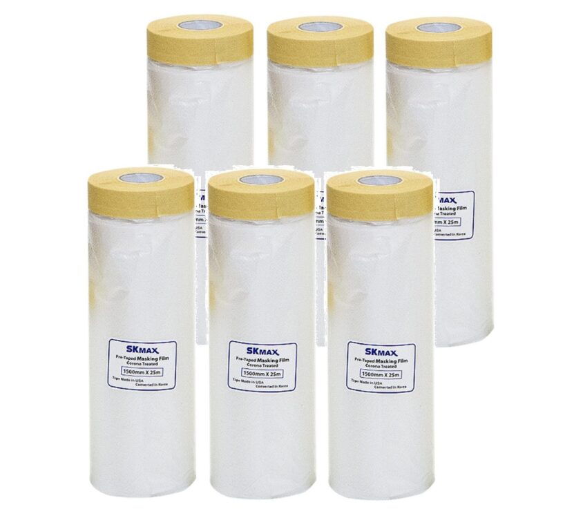 SKmax Pre-taped Masking, 3/4″ Masking Tape with 5 Ft Drop Down Film By 27YDS